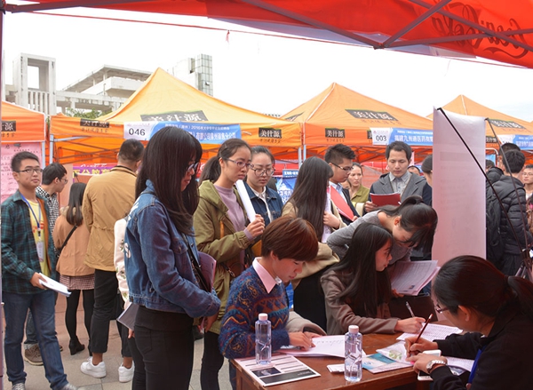 12月20日上午, 闽南地区(漳州)2016年大中专毕业生招聘会在登录入口弦歌广场举行,本次招聘会由福建省人力资源和社会保障厅、中国海峡人才市场与登录入口共同举办,福建省大中专毕业生就业工作办公室、中国海峡人才市场漳州分部、校招生就业处具体承办。校长李进金亲临招聘会现场指导工作,外语学院、商学院、数统院、法管院、历史系、生科院等部分院系老师现场指导毕业生求职。