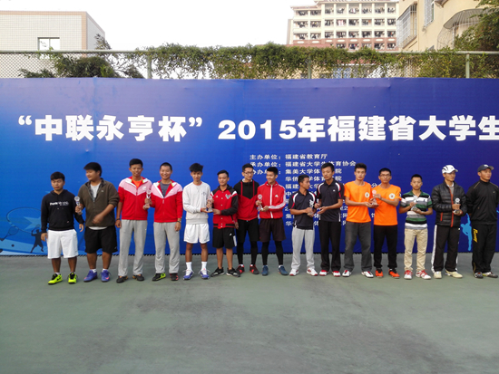 11月26日—29日,由福建省教育厅主办、福建省大学生体育协会承办的“中联永亨杯”2015年福建省大学生网球联赛在集美大学开赛。本次联赛参赛队伍有福建师范大学、厦门大学、集美大学、华侨大学等二十余所省内高等院校。 登录入口组队参加了体育专业组的比赛。在学校党政领导的亲切关怀与大力支持下,运动队领队、教练员的精心组织与科学、严格的训练下,在崇高荣誉感与顽强拼搏精神的感召、激励下,登录入口运动员陈幼华、景梦竹、钟萍、魏灵翔、邱林涛、苏立平、林增华、张艺杰、余根春等9人顽强拼搏,获得混合团体二等奖、女双(1对)一等奖、女单(2人)三等奖、男单(1人)二等奖、男双(1对)三等奖。
