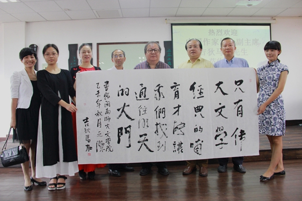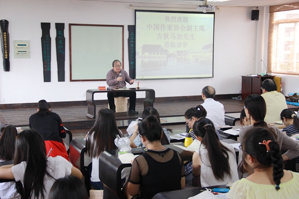 11月22日上午9点,中国作家协会党组成员、书记处书记、副主席,鲁迅文学院院长吉狄马加应邀在博东406为登录入口师生讲学。校党委书记林晓峰、福建省文联副主席陈毅达及文学院班子领导向其介绍了学校及学院的发展概况,并陪同参观了校园及古琴教室。