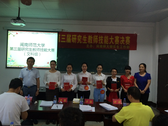 经过激烈的角逐,最终文学院彭子轩﹑化学与环境学院石凌远等同学分获文、理科组优秀奖,教育科学学院陈水生、生物科学与技术学院辛如等同学分获文、理科组三等奖,外国语学院胡艳芳、数学统计学院林勇娟等同学分获文、理科组二等奖,教育科学学院丁亚欣、外国语学院汤虞秋及化学学院韩雅娟同学分获文、理科组的一等奖。最后,研究生处领导及评委老师为各位获奖选手颁发获奖证书,本次决赛在热烈的掌声中圆满落下帷幕。