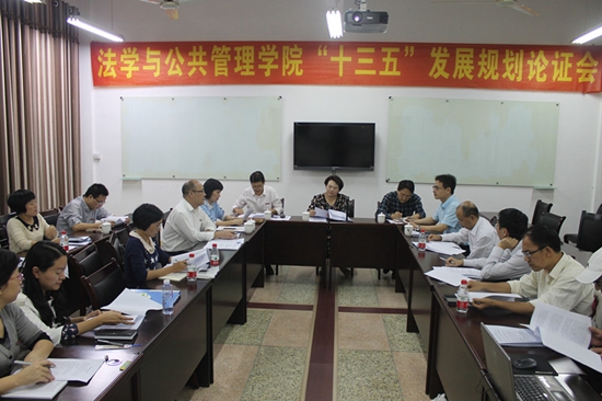 11月12日,法学与公共管理学院在博西106会议室举行了“十三五”发展规划专家论证会。副校长蒋一婷,发展规划处部门负责人、马克思主义学院专家,法学与公共管理学院领导班子、各系系主任、教师代表等参加了论证会。会议由该院院长何东平主持。