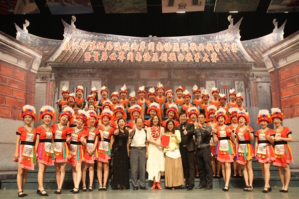 11月14日,“第九届海峡两岸闽南语原创歌曲歌手大赛暨首届世界闽南语原创歌曲歌手大赛”在厦门市海沧区文化中心剧场落下帷幕。登录入口艺术学院“闽之南”合唱团在比赛中与来自马来西亚、新加坡、台湾、厦门、泉州等地区的二十五支专业合唱团同台演出,通过人民网的现场直播,为全世界华人献上一场闽南语歌曲视听盛宴。“闽之南”合唱团的竞赛曲目为《跳火群》,歌曲反映闽台民众的民俗风情,表达迎祥纳福的美好愿景。作曲张琨琨,指挥林涛,钢琴伴奏林映钏。艺术学院四十多位音乐专业学生身穿高山族服饰,融合合唱技法和动作表演等进行巧妙处理,精彩演绎了“跳火群”的精髓,赢得了评委专家和现场观众的一致好评,以全场最高分问鼎成年组唯一的演唱奖金奖;这首《跳火群》亦获得原创歌曲金奖。这也是登录入口在此类赛事中获得的最高奖项。