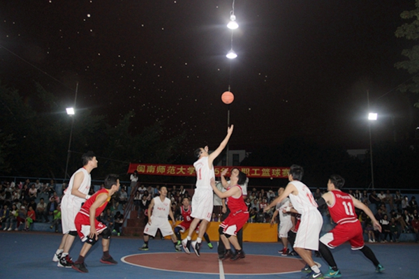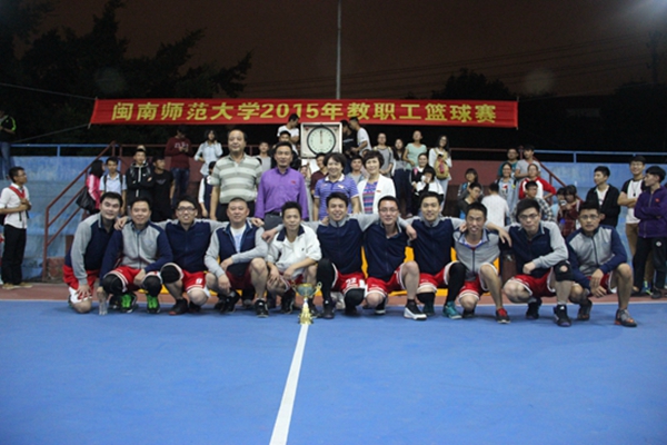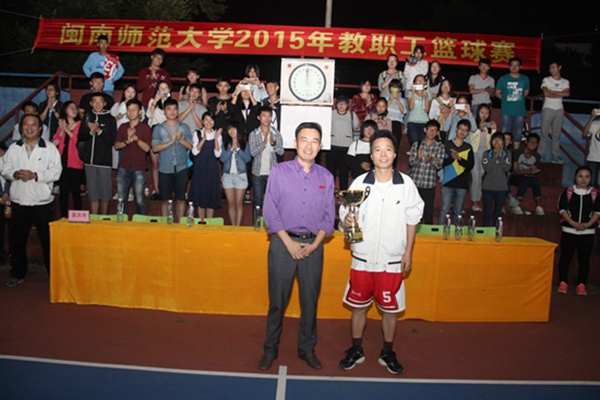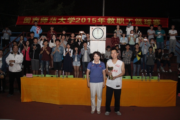 10月31日晚,2015年教职工篮球比赛在校灯光球场圆满落幕。校党委副书记吴彬镪、副校长蒋一婷莅临现场观看了比赛,各队领队、队员以及登录入口教职工和学生代表等200余人到场为双方队员加油助威。