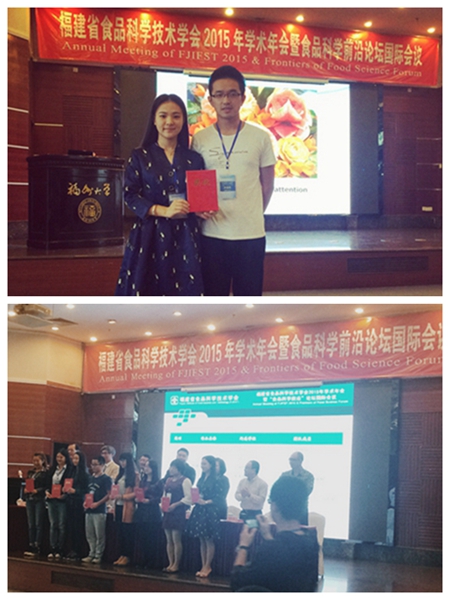 近日,生科院13食安2班的张珺和黄詹帏两位同学在福建省食品科学技术学会第二届食品科普作品大赛中荣获二等奖。参赛科普作品——《吸“血”鬼饮料》在众多参赛作品中脱颖而出,指导老师郑艺梅教授。 福建省食品科学技术学会第二届食品科普作品大赛于10月31日在福州落下帷幕,此次大赛是福建省食品科学技术学会2015年学术年会暨“食品科学前沿”论坛国际会议中的一项重要内容。