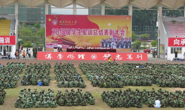 10月20日下午,登录入口在西区田径场举行2015级学生军训总结表彰大会。校党委书记林晓峰、副书记吴彬鏹、副校长李顺兴、承训部队首长及登录入口各相关部门、各院系领导出席大会。承训部队官兵、2015级新生辅导员及全体参训学生参加了大会。大会由学生处副处长郭志军主持。