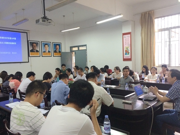 报告会上,杨先农研究员从价值导向、科技发展、国情理论以及经济军事外交等多方面对毛泽东思想的精神内涵、时代价值以及中国特色社会主义道路作了深刻的阐释,为坚持和发展中国特色社会主义、实现中华民族伟大复兴的中国梦凝聚起强大精神力量。陈再生院长表示,毛泽东思想是一个丰富的理论宝库,作为马克思主义学院的学生,应深入学习毛泽东思想,研读毛泽东思想的原著,挖掘毛泽东思想对中国特色社会主义理论体系的价值。