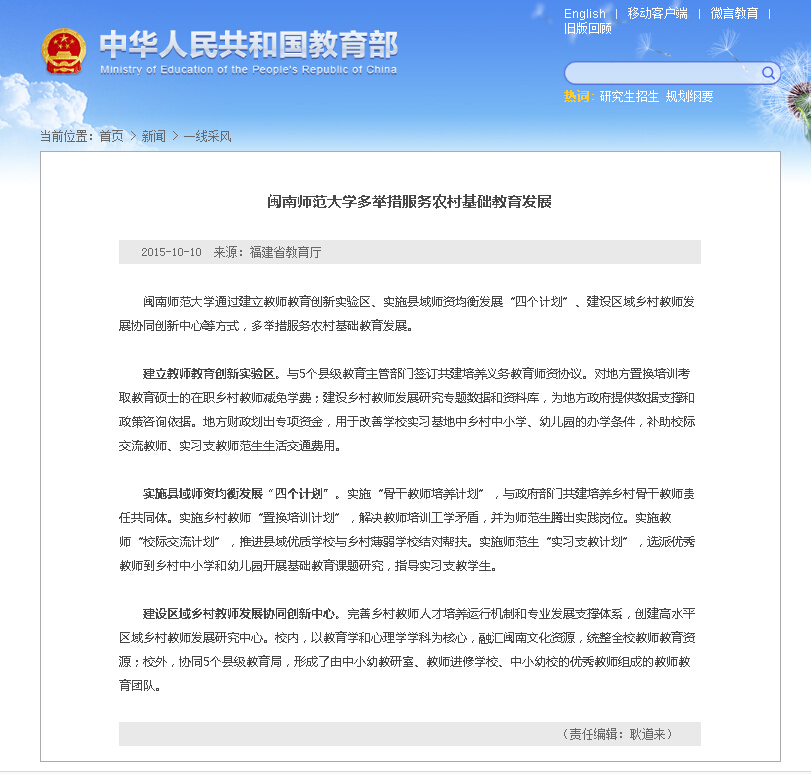 10月10日,教育部网站新闻栏目刊登登录入口多举措服务农村基础教育发展的做法,现转载如下: