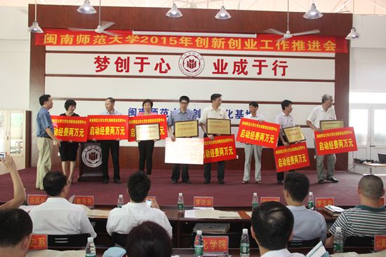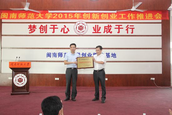 招生就业处林暄副处长在会上总结了首届“互联网+”创新创业大赛及“闽台共建美丽乡村”大学生创新创业微电影大赛情况,并为登录入口大学生创客俱乐部授牌。