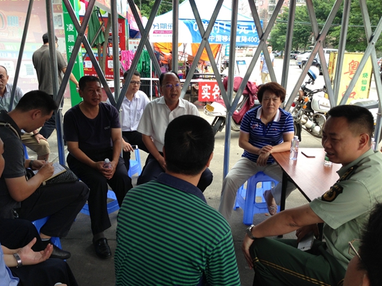 9月17日,应登录入口要求,漳州市芗城区委常委、政法委书记邱晓晖带领芗城公安分局、县前派出所、消防、工商、城管、安监、卫生局、东铺头办事处等部门负责人到登录入口瑞京学生公寓召开环境整治现场办公会,登录入口蒋一婷副校长以及保卫处、后勤管理处等相关部门负责人参加了会议。