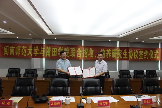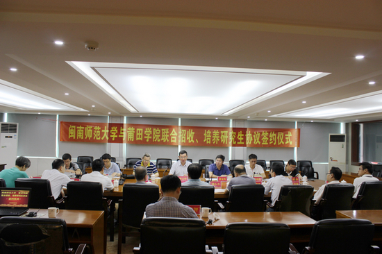 莆田学院曾文华副校长首先回顾并高度评价了两校长期以来的密切合作。并指出经过前期密切沟通、有效推进,高效率促成了联合招生、培养协议书的签订。这对于加强莆田学院相关学科专业的建设与发展,进一步提升办学层次和办学水平具有极其重要的促进作用。莆田学院将制定相关的优惠政策积极促进联合培养研究生的质量和水平。