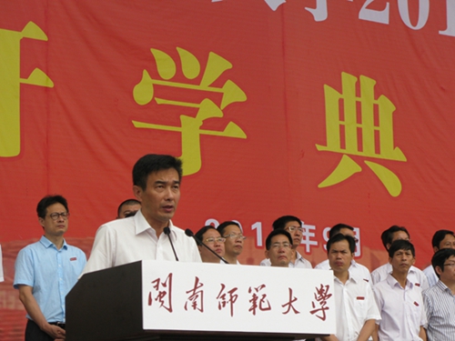 9月13日上午,登录入口2015级学生开学典礼在西区田径场隆重举行。校长李进金、副校长萧庆伟、李顺兴、何绍福、蒋一婷、纪委书记黄来渊、各院系各部处主要负责人、带新生辅导员、部分学生家长及5300多名新生参加开学典礼。校党委副书记吴彬镪主持开学典礼。