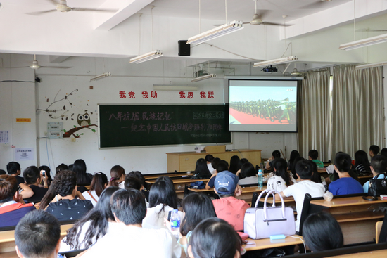 为进一步对广大青年学生进行深入的爱国主义教育和革命传统教育,传承弘扬伟大的抗战精神,校各级团组织近日还相继开展“弘扬伟大抗战精神,同心共筑强大国防”主题宣传教育活动。校青年宣传中心通过组织学生代表观看以“看战,抗战”为主题的大型抗战片——《百团大战》;校网络电视台制作了阅兵解读视频;校团委官方微博微信在9月3日开展了话题为#抗战胜利70载,同心共筑中国梦#的线上推广接力活动;校团委组织50名志愿者前往漳州市烈士陵园开展悼念革命先烈的活动,到漳州市档案馆参观了“全面抗战 共驱强敌”、“抗日救亡 保卫闽南”的系列图片展览、闽南地区抗战老兵的事迹以及珍贵的抗战时期史;校艺术团参演了济南第二团部队“印象军营最美军旅”送老兵文艺晚会;校青宣龙江青年杂志社也通过微博平台,发起了#抗战70周年征文大赛#的活动,校学生社团联合会承办的“中华人民共和国抗战暨世界反法西斯战争胜利70周年签名征集”活动,各学院的班级也陆续开展了关于纪念抗日战争胜利70周年的主题班会,通过PPT课件展示、照片展示、互动交流等方式,来回顾抗战历史,全方位、多角度宣传抗战胜利的重大意义,营造浓郁的校园舆论氛围,激发广大青年学生爱国情怀,砥砺民族气节,树立崇高的理想信念,做到志存高远、致知于行,不断增强大学生的国防观念,为推动实现“中国梦”、“强军梦”汇聚强大正能量。