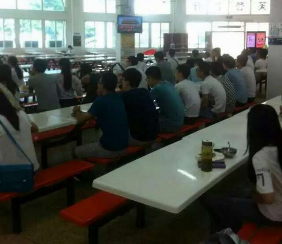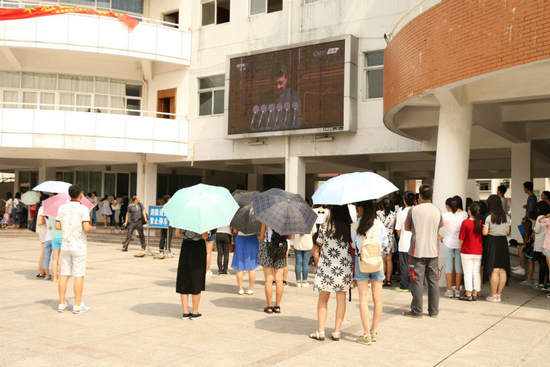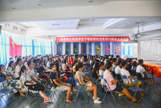一声声军乐雄壮,一个个步伐英姿飒爽。在各校区食堂,留在学校的同学早早就来食堂一起观看直播。新闻学院在校传媒技术中心的技术支持下,学院开放多间多媒体教室,组织师生集中观看纪念大会暨阅兵式电视直播。计算机学院在砺志楼414组织研究生集体观看。室外,达理公寓LED屏幕上的直播吸引着同学们的目光,共同见证这一雄壮的时刻,纷纷表示为我们伟大的祖国感到无比的自豪。学生会干部代表表示,阅兵是一次展示中国军威、彰显实力中国的一次最好机会,让所有国人能感觉到中国的气势和无法取代的大国气场,通过观看阅兵式,对于进一步增强民族自信心和民族自豪感,具有重要的意义。“此时此刻,作为一名中国人,我骄傲!”。校青宣代表表示,通过观看此次感受到了祖国的繁荣富强,为自己的祖国感到骄傲。同时她也表示,作为学生干部,以后将要更好地继承革命前辈的光荣传统,弘扬爱国主义精神,勇于担当历史与社会使命,树立良好的闽南师大学子风采。
