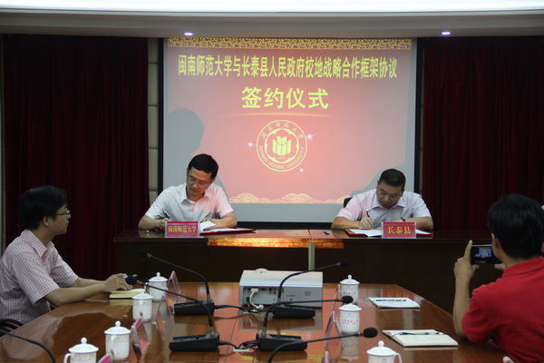 副校长李顺兴、长泰县政府副县长郑盛文分别代表双方签约