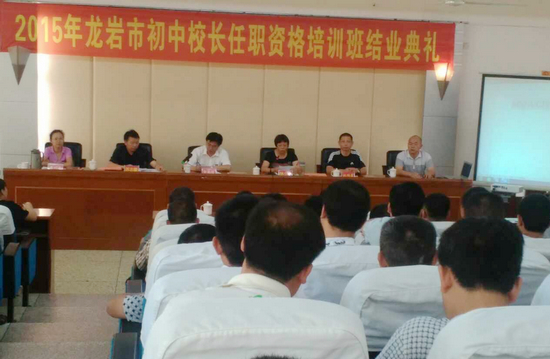 7月11日上午,龙岩市2015年初中校长任职资格培训班结业典礼在逸夫楼梯形教室举行。继续教育学院、龙岩市教育局部门领导出席了结业典礼。来自龙岩市72所初中学校校长参加了结业典礼。