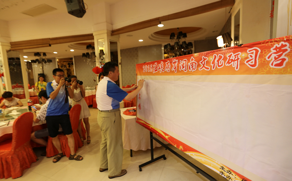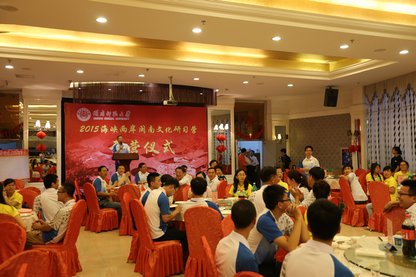 7月2日晚,由登录入口主办的2015年海峡两岸“闽南文化研习营”开营仪式在漳州华侨饭店开营,来自台湾大学、台湾师范大学、中央大学、台南大学、政治大学、铭传大学、高雄第一科技大学、金门大学、明道大学、嘉南药理大学等10所台湾高校60多名师生及厦门大学、登录入口部分师生代表等共80余人参与研习、互动和交流。校党委书记林晓峰、副校长萧庆伟,漳州市台办副主任陈建英、市政协文史委主任涂志伟、市台联副会长陈敬收、市金门同胞联谊会副会长吴美珠等领导出席开营式。