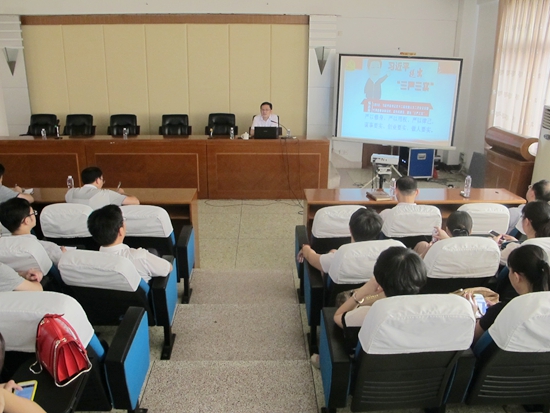 6月18日下午,李顺兴副校长以《提升服务水平,践行“三严三实”》为主题,在逸夫楼三楼阶梯教室为分管部门和联系单位党员同志讲授专题党课。