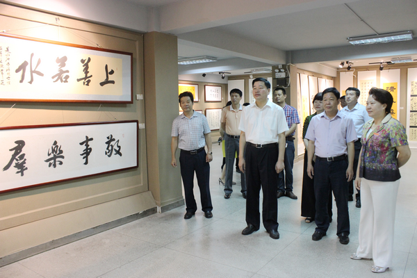 6月18日,市委常委、宣传部长阮开森带队到登录入口参观首届校友书画展。副校长蒋一婷陪同参观。市领导一行走进书画展展厅,并与艺术工作者交谈交流。 本届校友书画展自6月13日开展,参展作品共138幅。其中书法作品不乏篆书、隶书、草书、和楷书等,绘画作品包含油画、国画及篆刻等,作品形式多样、风格迥异。