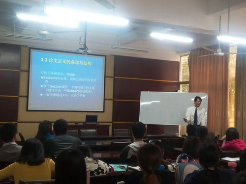 22日下午,吴教授作了题为《论文获得高录用率的写作与修改技巧》的报告,主要从论文的选题、正文的条理与结构、摘要、关键词、引言、总结、参考文献等来说明如何让论文获得高录用率,同时与在场师生分享了自己多年的经验。