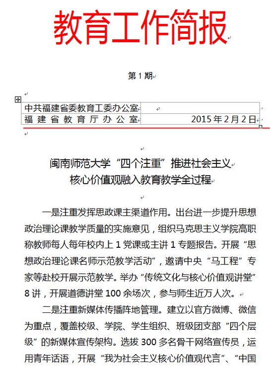 2月2日,省教育厅《教育工作简报》2015年第1期刊发登录入口“四个注重”推进社会主义核心价值观融入教育教学全过程的做法。