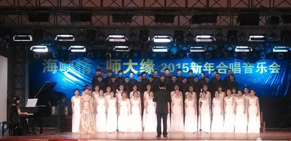 元月1日晚,由MK体育/mksport体育·官方网站主办,艺术学院、海外教育学院承办的“海峡情·师大缘”2015新年合唱音乐会在登录入口龙文馆举行。艺术学院“闽之南”合唱团、漳州市教师合唱团、台湾金门县合唱团同台演出,共迎新年。登录入口党委书记林晓峰、副校长李顺兴,漳州市市人大副主任李珊珊、市政协副主席李惜真等出席了音乐会。