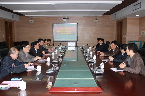 12月11日下午,校长李进金,副校长肖庆伟、李顺兴一行7人到集美大学考察交流。集美大学校长苏文金、副校长李克一同会见了登录入口考察交流组一行。