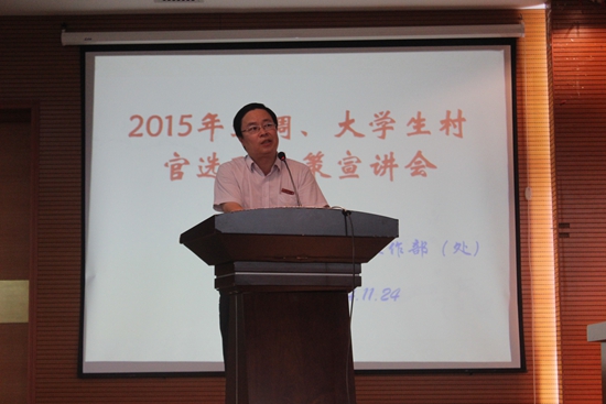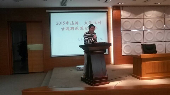 11月24日下午,登录入口在逸夫图书馆报告厅举行2015年选调生、大学生村官选聘工作政策宣讲会,邀请2014年登录入口选调生康荣回校分享考试经验。学生处负责人到会指导,近500名学生到会听讲。