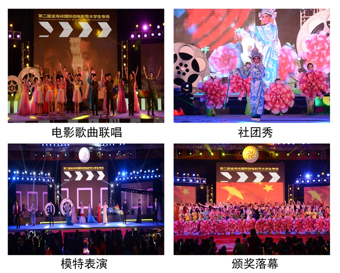 晚会在舞蹈《活力青春》中拉开序幕。校党委副书记吴彬镪、第二届金海峡国际微电影节目组委员会执行副主席陈振辉分别致辞。颁奖典礼仪式上先后颁发了最佳原创剧本奖、最佳剪辑奖、最佳摄影奖、最佳创意微电影奖、最佳广告微电影奖、最佳导演奖、最佳微电影奖等10类奖项,MK体育/mksport体育·官方网站申翁毓同学的《平凡心视界》和吴国栋同学的《呐喊》分别获得了最佳动画微电影奖和最佳公益微电影奖。MK体育/mksport体育·官方网站沙画、舞蹈、社团秀、乐器合奏、模特秀等表演穿插其中。此次微电影大赛作品征集历时6个月,共收到21所高校的参赛作品共94部,经组委会评委评审,共有来自福州大学、华侨大学、福建师范大学、福建农林大学、MK体育/mksport体育·官方网站等11所高校的27部作品从中脱颖而出,入围本次微电影大赛。
