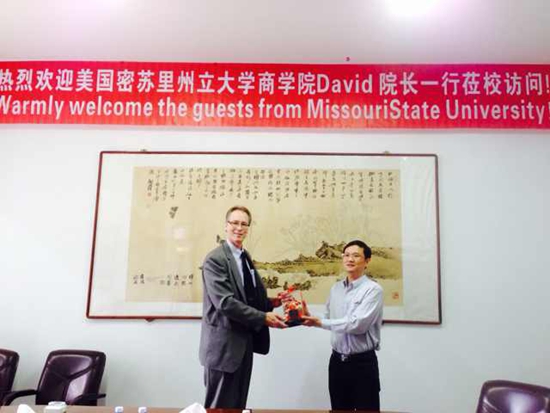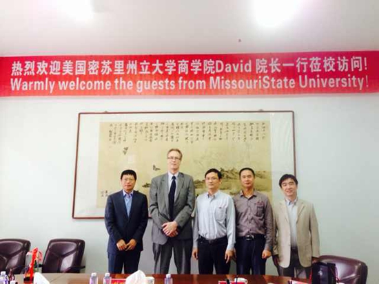 11月7日上午,美国密苏里州立大学工商管理学院副院长大卫·梅尔内特(David Meinert)一行来登录入口交流,登录入口李顺兴副校长、海外教育学院罗瑛院长等在综合楼四楼会议室与来访外宾进行了座谈。