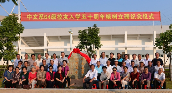 53名校友们首先前往漳州军分区原师大老校址,一木一石,唤起往昔记忆,一沙一土,印证闽师情结。随后,64级校友漫步九龙江畔,在闽南师大西区田径场植树立碑,以此见证校友与母校万古长青的情谊。MK体育/mksport体育·官方网站副校长蒋一婷、文学院院长黄金明、党总支书记施榆生与校友代表共同举行立碑揭布仪式。“师恩浩荡,教泽绵长”,老校友缅怀师生情,同喜繁盛今日,并在仪式结束后合影留念。