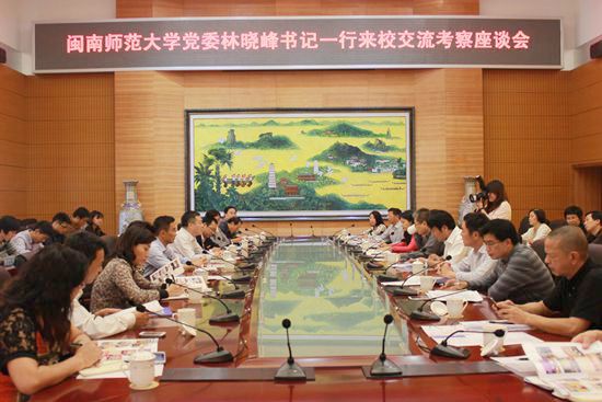 11月3日,校党委书记林晓峰一行到福州大学学习考察,党委副书记吴彬镪,副校长何绍福、蒋一婷,纪委书记黄来渊,学校办公室、组织部、宣传部、学生处、研究生处、后勤管理处、财务处、国有资产管理处、校友办等部门负责人以及法学院、物理与信息工程学院、历史与社会发展学院、计算机学院、管理学院、经济学院等学院负责人参加考察交流。