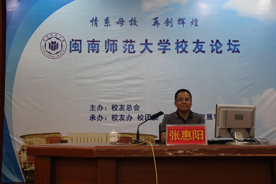 张惠阳:91级历史专业学生,资深记者,从事新闻20年。历任《海峡都市报》漳州记者站副站长、泉州记者站长,《海峡导报》新闻策划中心副主任,《晋江经济报》教育文体部主任。系福建省作家协会会员、福建省报纸副刊工委委员、福建省诗歌朗诵协会理事。著有新闻作品集《尘土飞扬》一书。