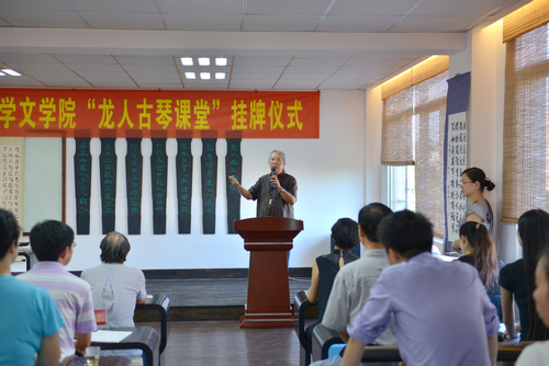9月17日下午,登录入口文学院在博文楼古琴教室设立龙人古琴课堂,中国龙人古琴文化村村长谢建东、龙人古琴艺术总监张锦冰、中国琴会副会长杨青、著名古琴家乔珊、笛箫演奏家郑济民等琴师名匠,登录入口副校长肖庆伟、校相关部处领导及文学院领导老师出席了挂牌仪式。中国龙人古琴谢建东董事长为文学院古琴课堂授琴。
