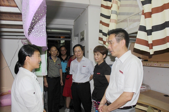 在新生宿舍里,校领导与同学们亲切交谈,仔细询问他们的家庭生活情况、民族风俗、报到情况和到校后的感受,表示学校会尽最大努力给予帮助,希望他们轻松上阵,不要背包袱,尽快适应新环境,融入新的生活,以刻苦学习和优异的成绩回报家庭、回报学校、回报社会。吴彬镪副书记还叮嘱带班辅导员要密切关注困难学生学习和生活情况,把工作做好、做细、做实。