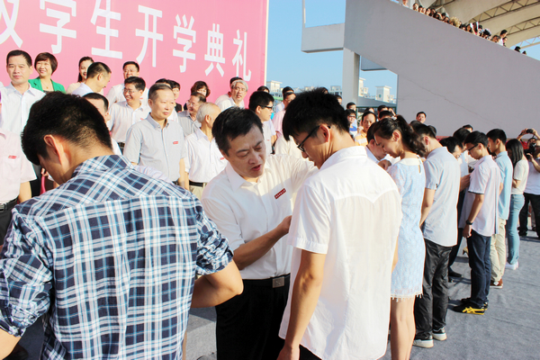 典礼上,福建省高校杰出青年科研人才培育计划入选者,数学与统计学院林福财作为教师代表也在会上寄语新同学。在校生代表及新生代表也在会上发言。与会校领导、嘉宾还为新生代表佩戴校徽。
