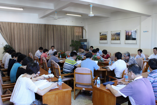 7月13日下午,校党委副书记、校长李进金在综合楼六楼会议室,主持召开党的群众路线教育实践活动问题整改落实协调会。校党委委员、副校长肖庆伟、李顺兴、何绍福、蒋一婷,以及相关职能部门负责人参加了会议。