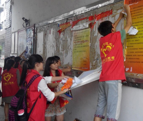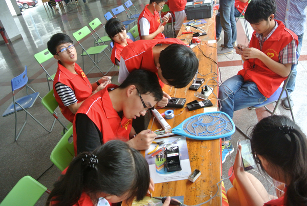 本次“青舞飞扬——校级专项志愿服务队系列活动”是校级专项志愿服务队服务系列之一。22日下午,虽是连绵的阴雨,但并没有阻碍专项志愿服务队开展活动的进程,随处可见身着红色志愿马甲的志愿者的身影。在达理活动中心,家电维修队志愿者为同学们维修电脑、台灯等生活小电器,电脑维护队志愿者帮助同学们维护电脑,“Run devil”志愿服务队志愿者正在整理摆放自行车;在校车停靠点,零钱大作战队志愿者正逐个为等候校车的同学们换零钱;在行明隧道,创卫队拿着清洁工具,认真地清楚校园小广告;在逸夫图书馆,木棉花书香队志愿者正在整理摆放图书等,此次活动共有22支校级专项志愿服务队开展志愿服务活动。