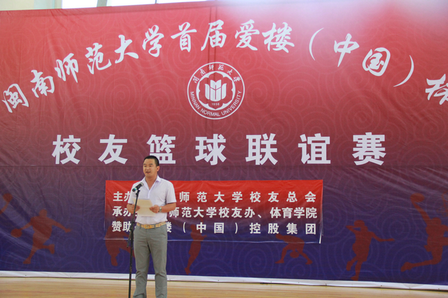 随后,本次比赛的裁判长、体育学院院长赵俊荣宣布首届爱楼(中国)杯校友篮球联谊赛正式开始。