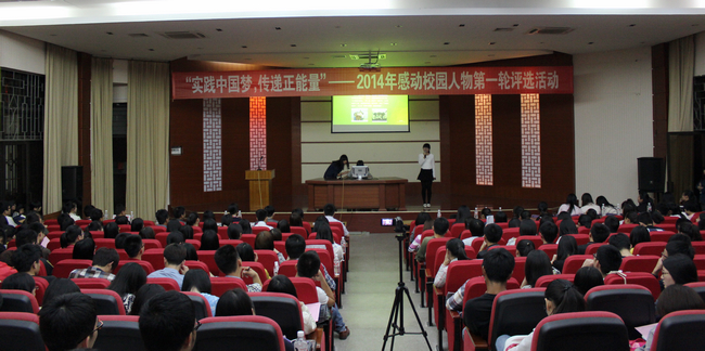 在广泛宣传的基础上,校学生处、团委发动广大学生对28名“感动校园”人物候选人进行网上公开投票。5月6日晚,第一轮现场展示评选活动在登录入口学术报告厅举行,250多名师生到场聆听感人事迹报告。
