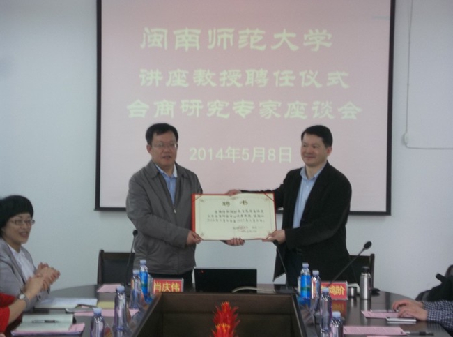 为了进一步合理定位台商研究中心的研究方向,打造特色研究基地,5月8日上午在经济学院会议室举行“MK体育/mksport体育·官方网站讲座教授聘任仪式暨台商研究专家座谈会”。福建社会科学院副院长、研究员李鸿阶受聘为MK体育/mksport体育·官方网站讲座教授。副校长肖庆伟、人事处、闽南文化研究院、社科处负责人,经济学院和台商研究中心教师参加了本次会议。