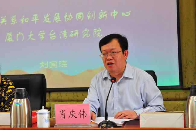 厦门大学台湾研究院院长刘国深在开幕式上做主题发言