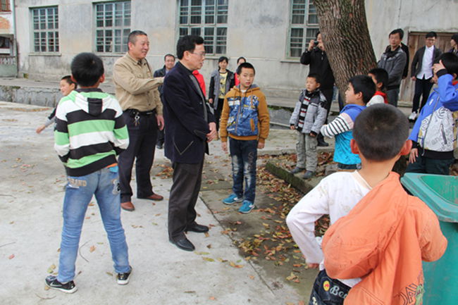 李校长与农村留守儿童交谈