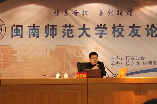 本次讲座在徐鉴毅校友回忆自己大学生活中拉开序幕。徐鉴毅校友先后以“我的大学”、“毕业十余年回顾”、“创业十年体会”为话题为我们带来了他的“人生三昧”。徐校友首先回顾了他的大学生涯,以“让我学会一切必须靠自己,学会如何生存”概括了自己怎样靠2000元读完大学的艰辛历程。在回顾毕业十余年时,他分享了《五灯会元》青原惟信禅师的话,“见山只是山,见水只是水”,展现出工作就是生活,生活就是工作,指出人生其实是一场修行。徐校友还从局与势、大智慧、专注与坚持、自由飞翔等方面分享了自己创业十年的经验,以此告诫我们应该不断进步,不满足于现状。