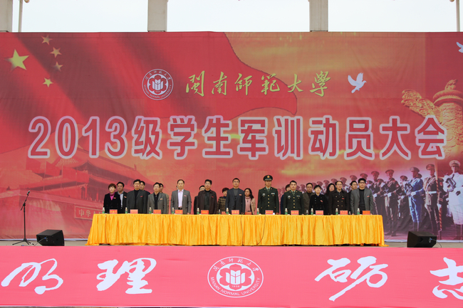 会上,林春生副书记作了激情洋溢的动员讲话。他代表学校向部队官兵表示热烈欢迎和衷心感谢,向为军训辛勤工作的老师和积极参训的学生致以良好的祝愿。他指出,富国与强军,是发展中国特色社会主义、实现民族复兴的两大基石。建设巩固的国防和强大的军队,是我国现代化建设的战略任务。在校大学生参加军训,是加强国防后备力量建设的战略措施。他希望参训学生站在国家和民族安危的高度来深刻认识军训工作的重要性,全身心投入,认真履行光荣义务。他向全体参训学生提了四点要求:一是牢记历史使命,增强国防意识。努力深化对历史和国情的认识,积极发扬爱国主义精神,不断增强国防意识,主动参与国防建设,与祖国同呼吸、共命运。二是关心当前形势,坚决维护统一。在祖国统一的进程中,漳州有着重要的地位,作为闽南师大的学子,更要主动关心当前形势,以实际行动坚决制止“台独”分裂活动,坚决捍卫国家主权和领土完整。三是坚持刻苦训练, 练就钢铁意志。严格按照教官的要求,认真听从指挥,在校园军旅中吃苦耐劳,艰苦奋斗,练就过硬的本领。四是坚持虚心学习,提升综合素质。文明有礼,保持谦虚谨慎的态度,认真向教官学技术、学本领、学做人,练就服务祖国人民的本领,真正成为具备高素质、掌握高科技,思想坚定、作风优良的国防后备力量。