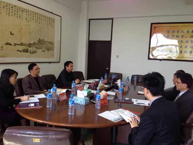 郑道明副校长在介绍了台湾高等职业教育的基本情况后,介绍了朝阳科技大学的办学优势和办学成果。该校是台湾第一所私立科技大学,设有5个学院、22个系,在校生约1.7万人。李顺兴副校长代表登录入口对郑副校长一行的到访表示热烈欢迎,就学生培养教育的途径、拓展台湾生在大陆就业机会和能力,开展两岸“双导师制”硕博士专业合作等进行了交流与探讨。