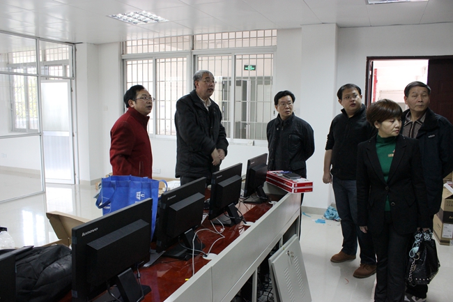 在校园网多媒体总控制室听取相关人员汇报建设进展情况
