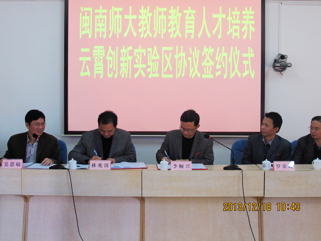 12月18日上午,登录入口教师教育人才培养云霄创新实验区签约、授牌仪式在云霄县教育局举行。我副校长李顺兴,云霄县政府副县长、教工委副书记林兆波,登录入口宣传部、外语系、实习支教指导中心,云霄县教育局、县政府教育督导室等部门负责人和云霄县各中小学校长、园长等相关人员参加仪式。