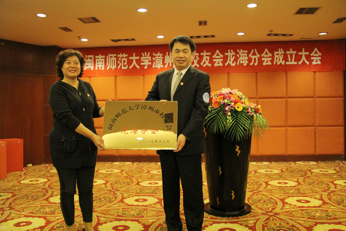新任的龙海校友会会长石志农发表了热情洋溢的讲话。他代表龙海全体校友向母校领导和老师对龙海校友分会成立所付出的努力表示诚挚的感谢,对母校和校友们的信任和支持表达了感谢和感恩之情。他指出龙海校友分会的成立,为龙海校友提供一个联络感情、互通信息、携手共进的平台。他表示将积极组织龙海校友分会开展各项活动,鼓励各位校友为龙海校友分会的建设和发展献计献策,希望龙海校友分会能在大家的共同努力下蒸蒸日上,为母校的发展贡献力量。漳州市校友会会长李惜真为龙海校友分会授牌。