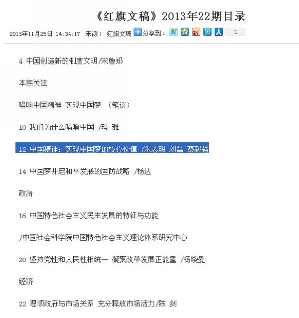 2013年11月25日,中共中央机关刊《求是》杂志社的半月刊《红旗文稿》,刊登登录入口国家社科基金特别委托项目(“弘扬中国精神 促进中国梦实现”课题)的研究成果文章——《中国精神:实现中国梦的核心价值》,文章由课题组朱志明、刘磊、蔡毅强等三人共同完成。新华网、光明网、人民网、凤凰网等知名网站也对此文相继转载。
