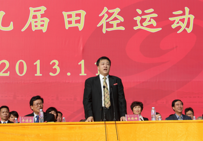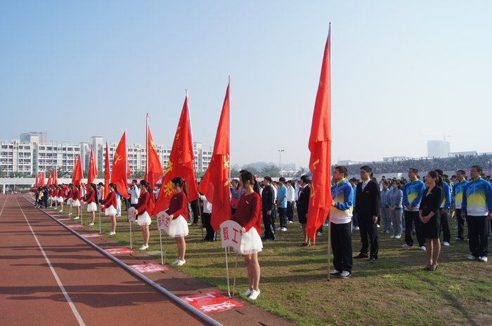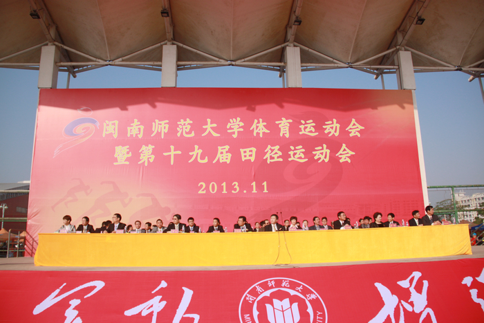 晴空一鹤排云上 便引诗情到碧霄。11月21日上午八点半,2013年校体育运动会暨第十九届田径运动会在西区田径场开幕。校领导林晓峰、李进金、林春生、李克、李顺兴、蒋一婷,校务委员孙联明、校长助理林静华,本次运动会组委会全体委员、各院系和部处领导、附小代表出席了本次运动会开幕式。党委书记林晓峰宣布运动会开幕。副校长李顺兴主持了开幕式。